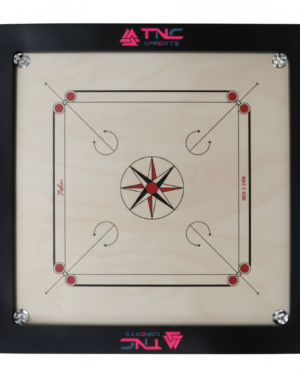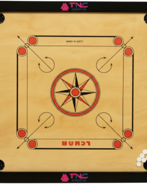 TNC SPORTS Carrom Board Club Gloss Finish is crafted from premium Assam plywood with a sturdy Kikar hardwood border. Featuring a smooth, water-resist- ant gloss finish for enhanced play, it offers excellent rebound and durability.
