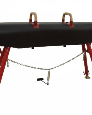 The TNC SPORTS Pommel Horse features wooden handles with thick foam padding and a non-tearing synthetic cover for durability. Its adjustable height ensures safe and comfortable training as per standard regulations.