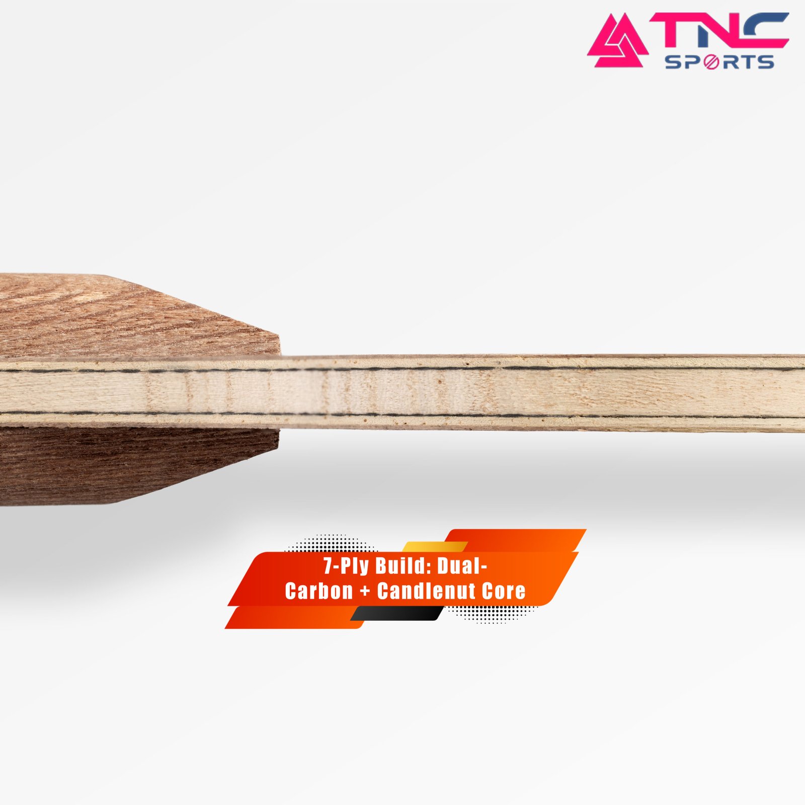 Unleash unstoppable power with the TNC SPORTS HEXA-TUSKER, designed for offensive players who thrive on speed, precision, and control. Featuring Walnut outer plies, dual-core carbon reinforcement, and a balanced Candlenut core, this blade delivers explosive performance in every rally.